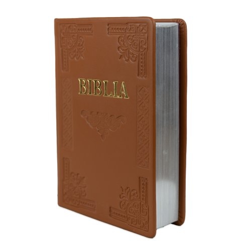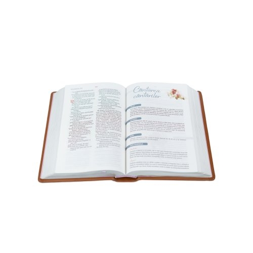 Biblia de studiu pentru femei, piele handmade, marime medie, maro, margini argintii, cuv. lui Isus cu rosu