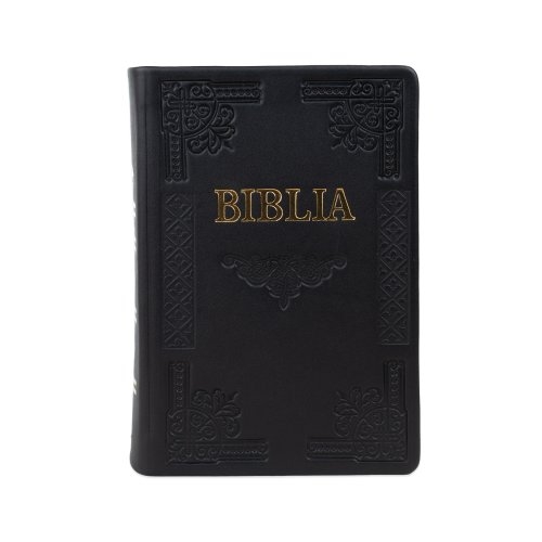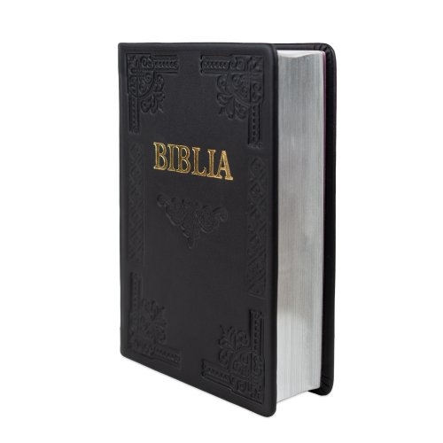 Biblia de studiu pentru femei, piele handmade, marime medie, neagră, margini argintii, cuv. lui Isus cu rosu