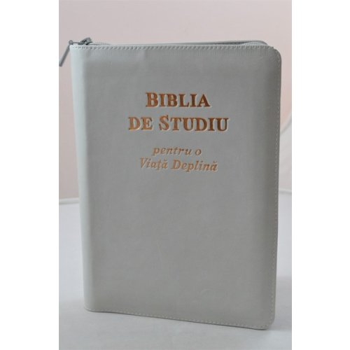Biblia de studiu pentru o viata deplina, cu concordanta si explicatiii, fermoar, cenusiu deschis, index, margini albe