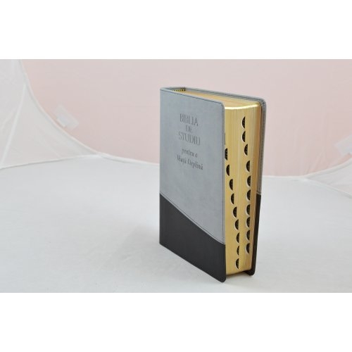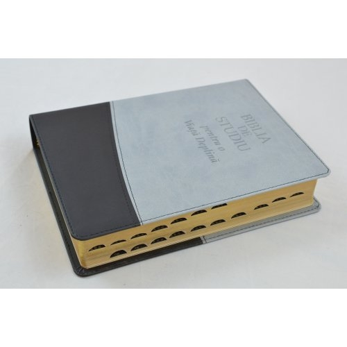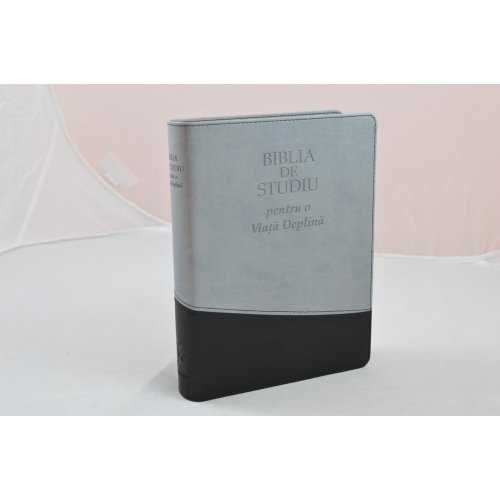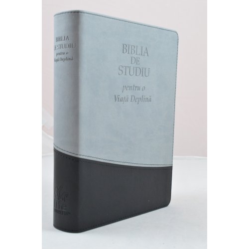 Biblia de studiu pentru o viata deplina, cu concordanta si explicatii, din piele gri cu negru