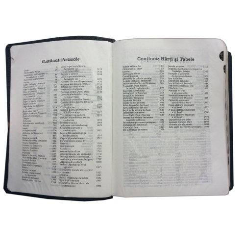 - Finisaje: margini aurii, index de căutare rapidă a cărților biblice
