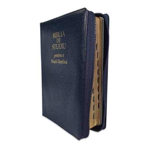 Biblia de studiu pentru o viata deplina, cu concordanta si explicatii, fermoar, bleumarin, index, margini aurii
