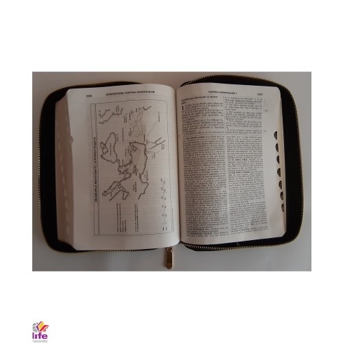 - Finisaje: fermoar, margini aurii, index de căutare rapidă a cărților biblice