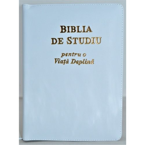 Biblia de studiu pentru o viata deplina, cu concordanta si explicatiii, fermoar, alba, index, margini aurii