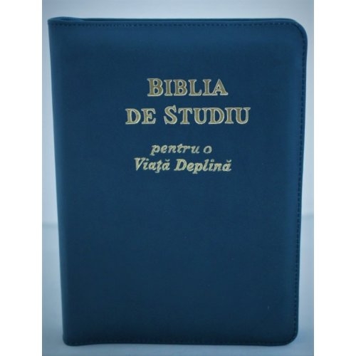 Biblia de studiu pentru o viata deplina, cu concordanta si explicatiii, fermoar, albastru metalic, index, margini aurii