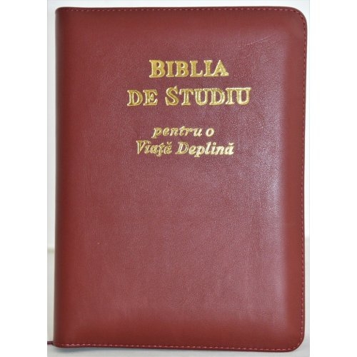 Biblia de studiu pentru o viata deplina, cu concordanta si explicatiii, fermoar, stacojiu, index, margini aurii