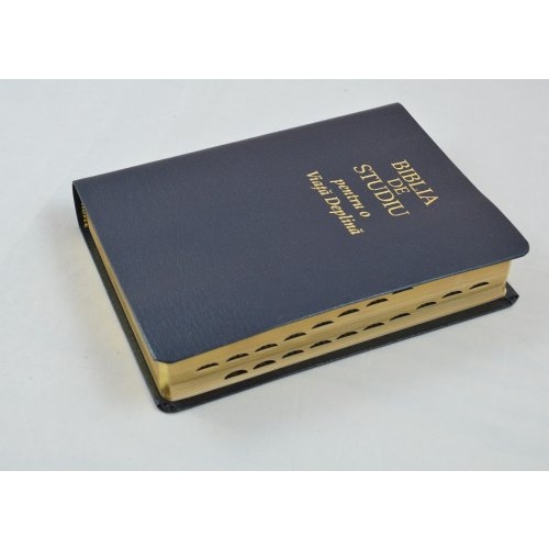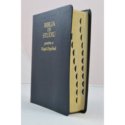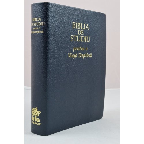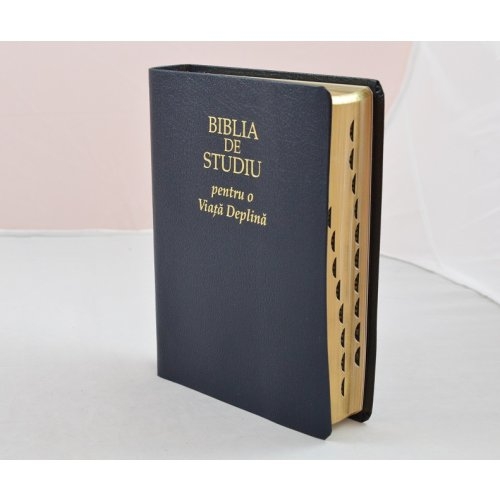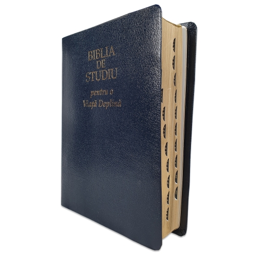 Biblia de studiu pentru o viata deplina, cu concordanta si explicatii, din piele bleumarin, index, margini aurii