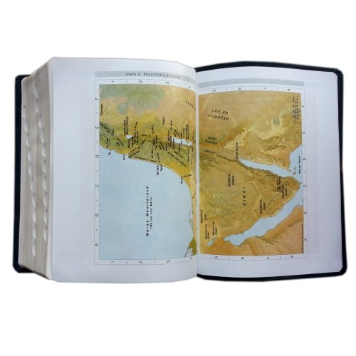- Ne sunt oferite 14 harti biblice color dupa cum urmeaza: lumea patriarhilor, Palestina si Sinai, Exodul si cucerirea Canaanului, Tinuturile celor 12 semintii ale lui Israel si zonele ocupate de acestea dupa cucerirea Canaanului, Imparatia lui David si Solomon, Prorooci in Israel si Iuda, Imperiul Asirian si Babilonian, Ierusalimul in timpul Domnului Isus, harta cu lucrarea Domnului Isus, calatoriile apostolilor, calatoriile misionare ale lui Pavel, harta Imperiului Roman.