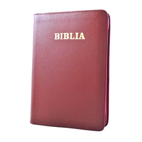 Biblia din piele, marime medie, visinie, fermoar, margini aurii, cuv. lui Isus cu rosu[052]