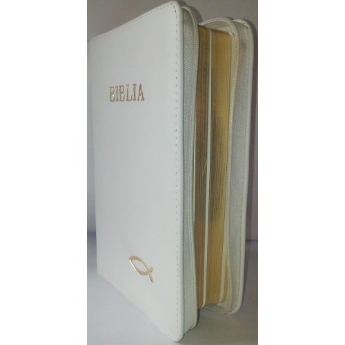 Biblia din piele, marime medie, alba, fermoar, cu peste [052]