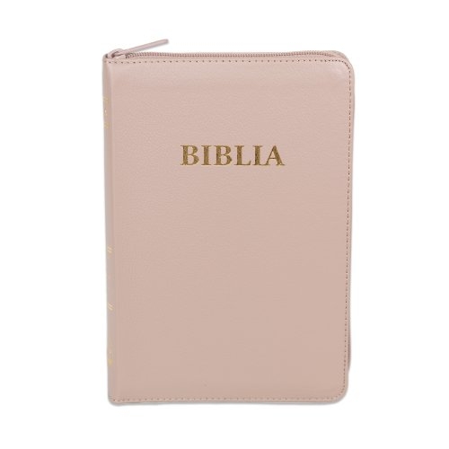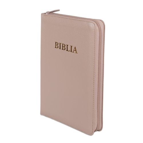 Biblia din piele ecologica, marime medie, crem, fermoar, index pe cotor, margini aurii, cuv. lui Isus in rosu [057 ZTI]