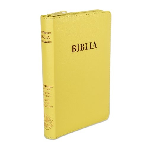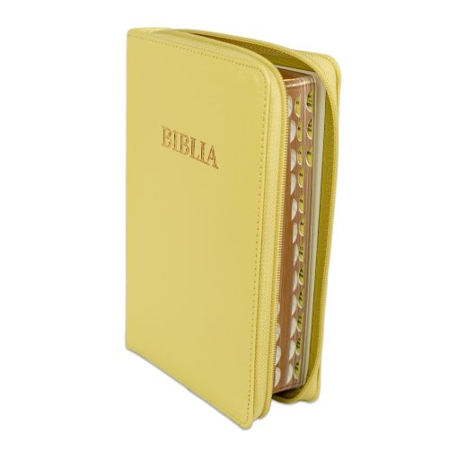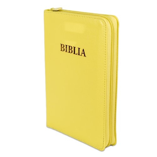 Biblia din piele ecologica, marime medie, galben verzui, fermoar, index pe cotor, margini aurii, cuv. lui Isus in rosu [057 ZTI]