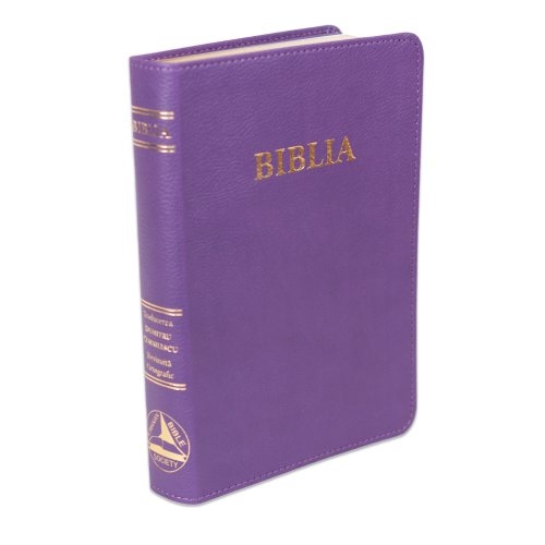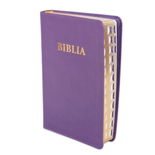 Biblia din piele ecologică, marime medie, mov, fara fermoar, index pe cotor, margini aurii, cuv. lui Isus in rosu [057 TI]