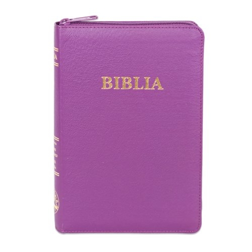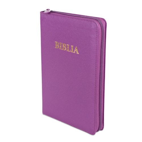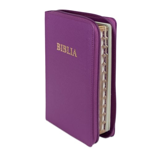 Biblia din piele ecologica, marime medie, mov, fermoar, index pe cotor, margini aurii, cuv. lui Isus in rosu [057 ZTI]