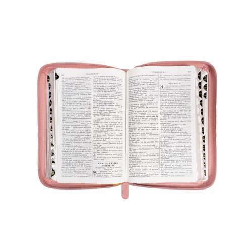 Biblia din piele ecologica, marime medie, roz, fermoar, index pe cotor, margini aurii, cuv. lui Isus in rosu [057 ZTI]