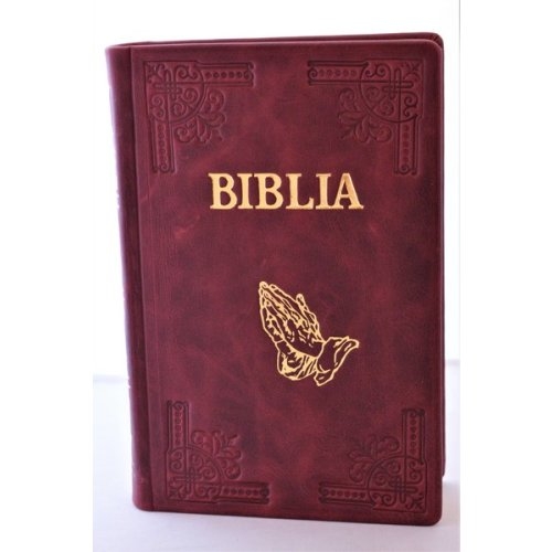 Biblia din piele, handmade, marime mare, visinie, margini aurii, simbol maini, cuv. lui Isus cu rosu [073 HM]