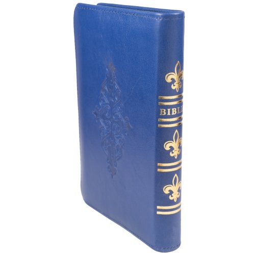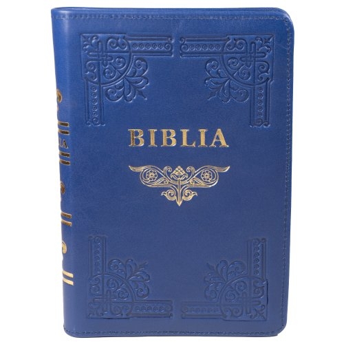 Biblia din piele, handmade, marime medie, culoare albastru indigo, fermoar,margini aurii cu index, cuv. lui Isus cu rosu [057 HM]
