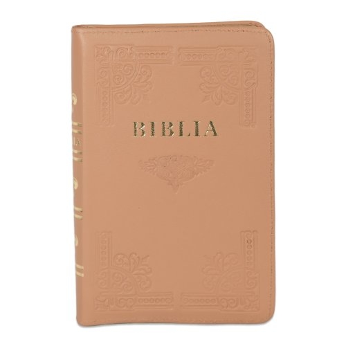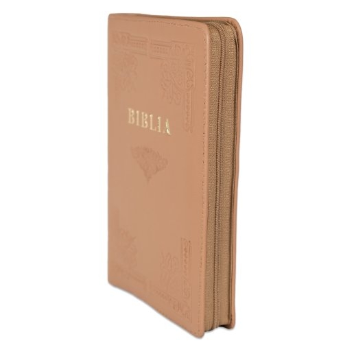 Biblia din piele, handmade, marime medie, culoare crem,fermoar, margini aurii cu index, cuv. lui Isus cu rosu [057 HM]