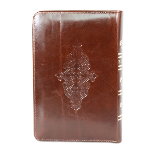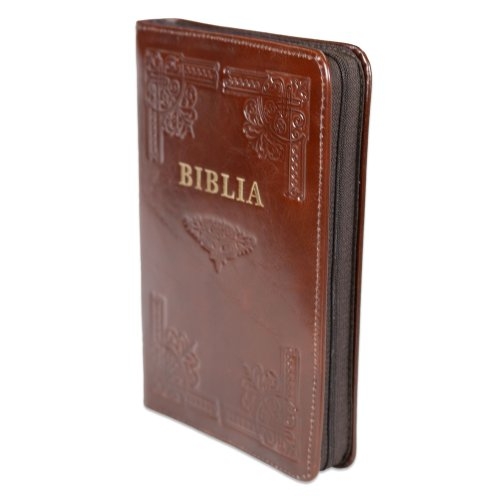 Biblia din piele, handmade, marime medie, culoare maro inchis,fermoar,margini aurii cu index, cuv. lui Isus cu rosu [057 HM]