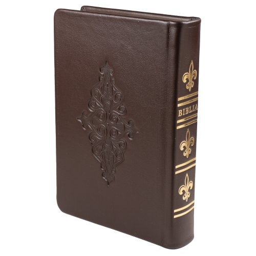 Biblia din piele, handmade, marime medie, culoare maro inchis, margini aurii cu index, cuv. lui Isus cu rosu [057 HM]