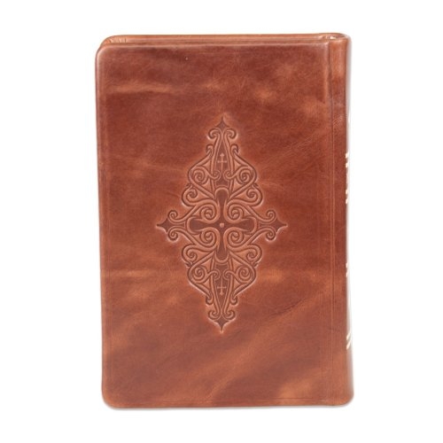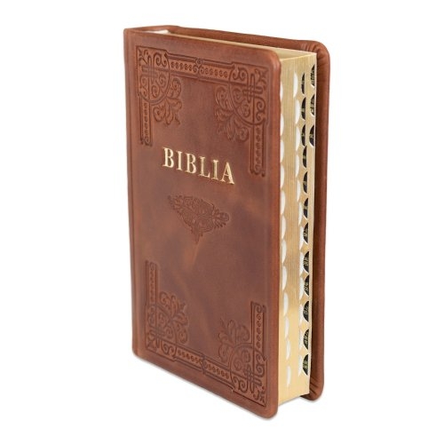Biblia din piele, handmade, marime medie, culoare maro, margini aurii cu index, cuv. lui Isus cu rosu [057 HM]