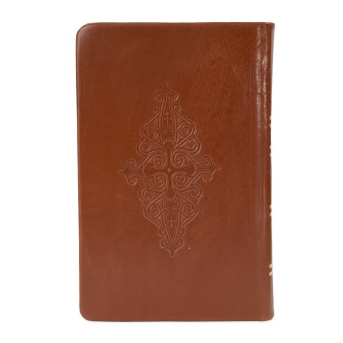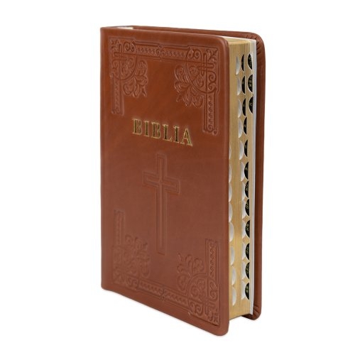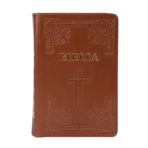 Biblia din piele, handmade, marime medie, culoare maro, simbol cruce, margini aurii cu index, cuv. lui Isus cu rosu [057 HM]
