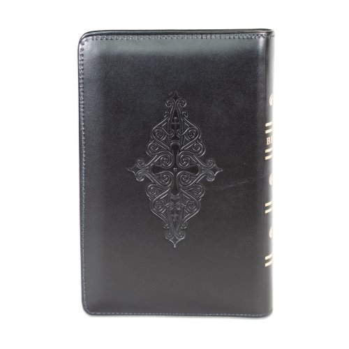 Biblia din piele, handmade, marime medie, culoare neagra,fermoar,simbol maini in rugaciune, margini aurii cu index, cuv. lui Isus cu rosu [057 HM]