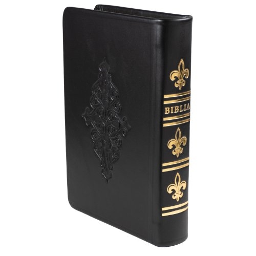 Biblia din piele, handmade, marime medie, culoare neagra, margini aurii cu index, cuv. lui Isus cu rosu [057 HM]
