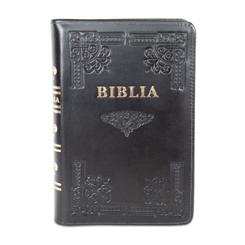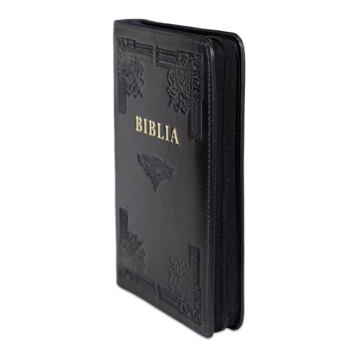 Biblia din piele, handmade, marime medie, culoare neagra, fermoar, margini aurii cu index, cuv. lui Isus cu rosu [057 HM]