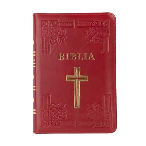Biblia din piele, handmade, marime medie, culoare roșie, fermoar, simbol cruce, margini aurii cu index, cuv. lui Isus cu rosu [057 HM]