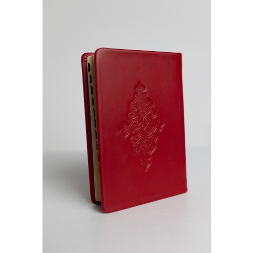 Biblia din piele, handmade, marime medie, culoare roșu, margini aurii cu index, cuv. lui Isus cu rosu [057 HM]