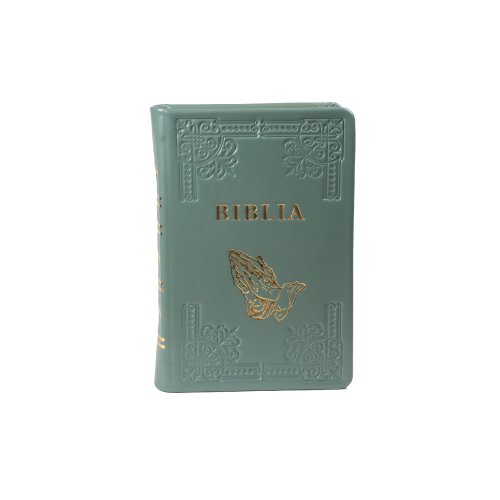 Biblia din piele, handmade, marime medie, culoare turcoaz deschis, margini aurii cu index, cuv. lui Isus cu rosu [057 HM]