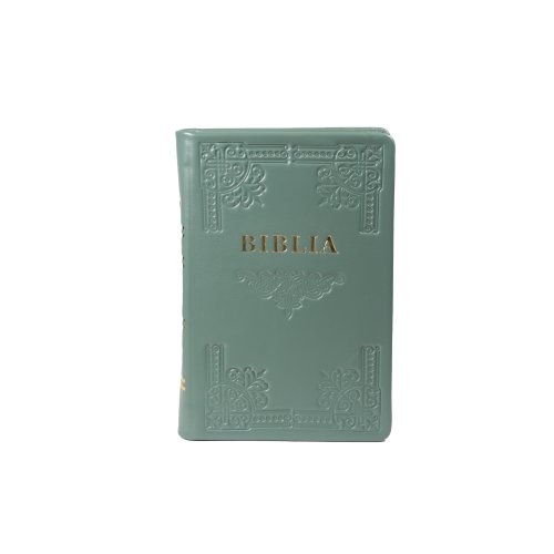 Biblia din piele, handmade, marime medie, culoare turcoaz deschis, margini aurii cu index, cuv. lui Isus cu rosu [057 HM]