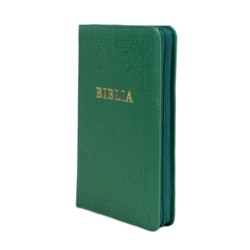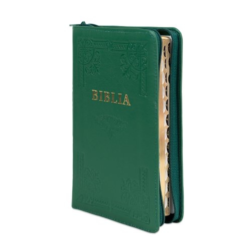 Biblia din piele, handmade, marime medie, culoare verde, fermoar,margini aurii cu index, cuv. lui Isus cu rosu [057 HM]