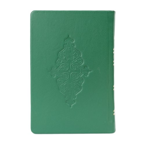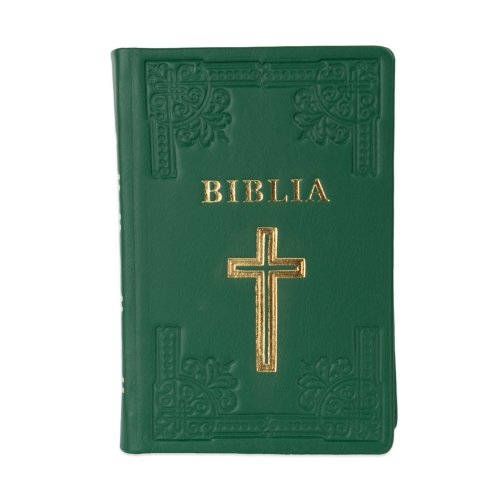 Biblia din piele, handmade, marime medie, culoare verde, simbol cruce, margini aurii cu index, cuv. lui Isus cu rosu [057 HM]