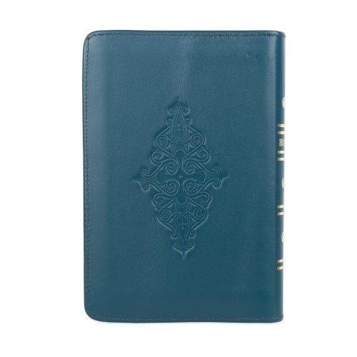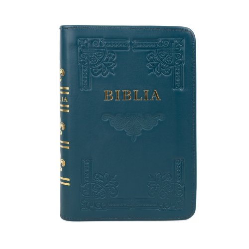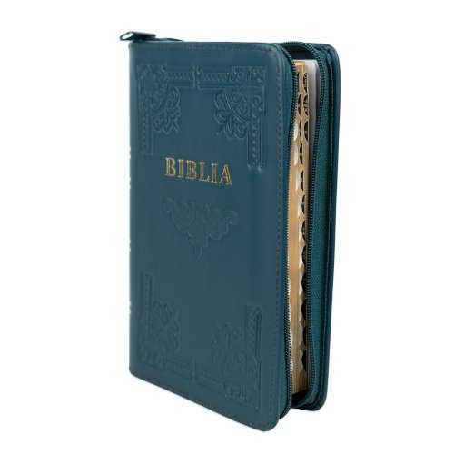 Biblia din piele, handmade, marime medie, culoare verde turcoaz închis, fermoar,margini aurii cu index, cuv. lui Isus cu rosu [057 HM]