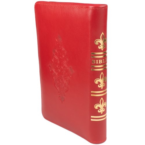 Biblia din piele, handmade, marime medie, culoare vișiniu, fermoar,margini aurii cu index, cuv. lui Isus cu rosu [057 HM]