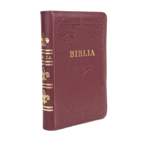 Biblia din piele, handmade, marime medie, culoare visinie,fermoar,margini aurii cu index, cuv. lui Isus cu rosu [057 HM]