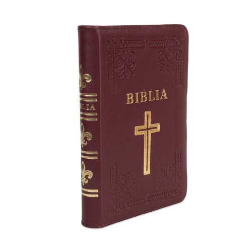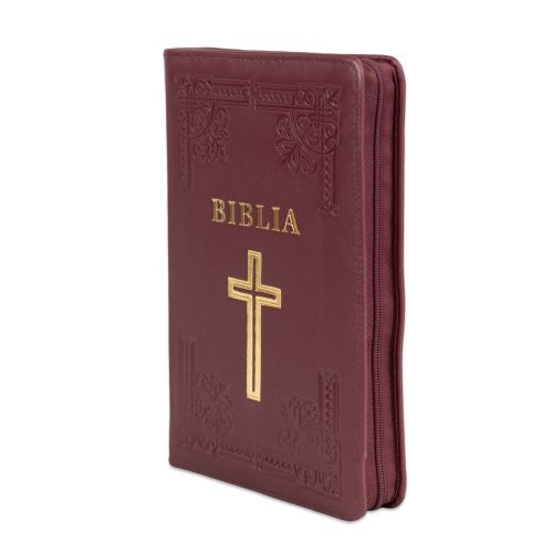 Biblia din piele, handmade, marime medie, culoare visinie, fermoar, simbol cruce, margini aurii cu index, cuv. lui Isus cu rosu [057 HM]