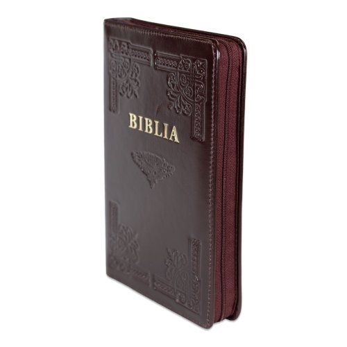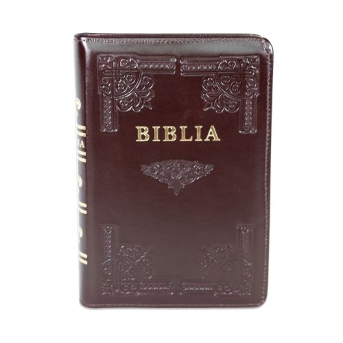 Biblia din piele, handmade, marime medie, culoare visiniu foarte inchis,fermoar, margini aurii cu index, cuv. lui Isus cu rosu [057 HM]