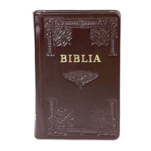 Biblia din piele, handmade, marime medie, culoare visiniu foarte inchis, margini aurii cu index, cuv. lui Isus cu rosu [057 HM]