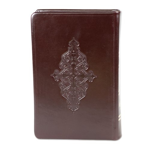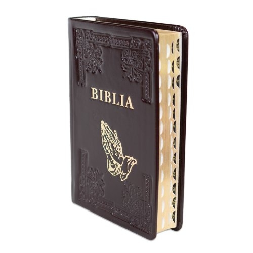 Biblia din piele, handmade, marime medie, culoare visiniu foarte inchis, margini aurii cu index,simbol maini in rugaciune, cuv. lui Isus cu rosu [057 HM]