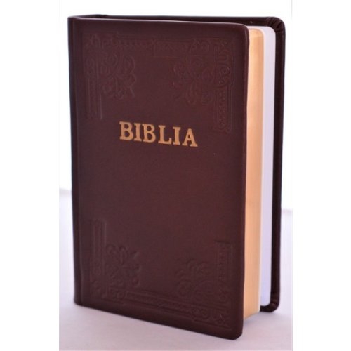 Biblia din piele, handmade, marime medie, visinie, margini aurii, cuv. lui Isus cu rosu [052 HM]