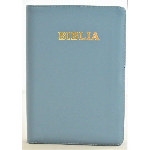 Biblia din piele, marime medie, albastru celadon, fermoar, cuv. lui Isus cu rosu [053]