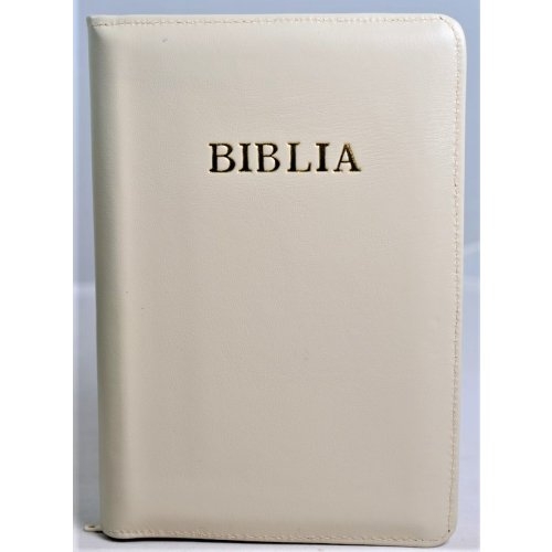 Biblia din piele, marime medie, bej, fermoar, cuv. lui Isus cu rosu [053]