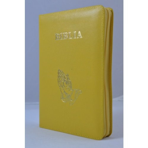 Biblia din piele, marime medie, culoare galben cu maini, fermoar, cuv. lui Isus cu rosu [053]