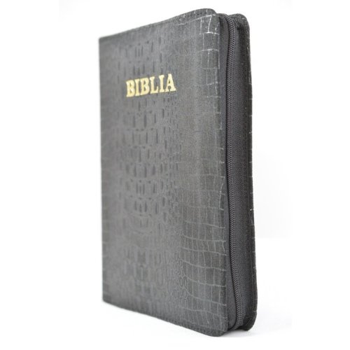 Biblia din piele, marime medie, culoare neagra , fermoar, cuv. lui Isus cu rosu [053
