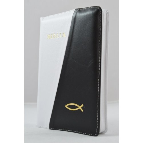 Biblia din piele, marime medie, culoare gri / negru, fermoar, cu peste, cuv. lui Isus cu rosu [053]