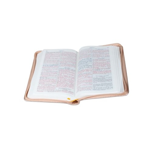 Biblia din piele, marime medie, culoare roz sidefat, margini albe, fermoar, cuv. lui Isus cu rosu [053]