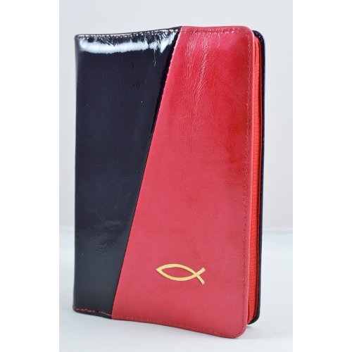 Biblia din piele, marime medie,lac bleomaren-roz, fermoar, simbol peste, cuv. lui Isus cu rosu [053]